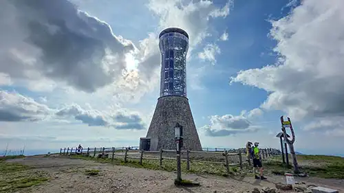 Na samym szczycie Śnieżnika znajduje się nowoczesna wieża widokowa, z której tarasów rozciąga się pełna panorama 360 stopni. Przy standardowej, dobrej widoczności bez trudu dostrzeżecie pobliski czeski Pradziad z charakterystyczną wieżą nadajnika (najwyższy szczyt Jesioników) oraz oddaloną o około 100 km Śnieżkę - królową Karkonoszy. Widok obejmuje niemal całe Sudety, od polskiej po czeską stronę, co czyni to miejsce jednym z najlepszych punktów obserwacyjnych w kraju.